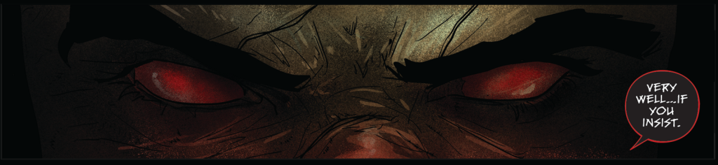 Woe if I were not to mention letterer Justin Birch, whose absolutely beautiful work shines best in his choices for the possessed boy Santiago’s speech bubbles. I am especially impressed with how much emotion is expressed in his lettering through the entire issue.